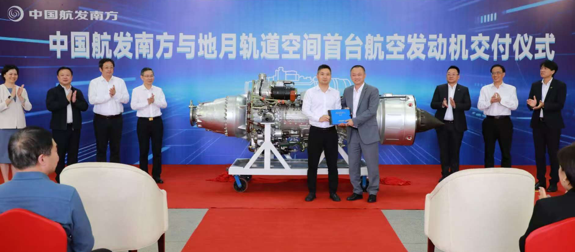 On April 25th, Jiao Qisen, the president of China Jing An; Xu Ke, the deputy general manager of China Jing An as well as the president of Earth-Moon Space; and other senior executives were invited to participate in the delivery ceremony of the first turboprop aircraft engine by AECC South Industry Co., Ltd. (referred to as AECC SI) in Zhuzhou, Hunan. This significant moment was witnessed by Chen Huiqing, the mayor of Zhuzhou; Yang Xianfeng, the president of AECC SI; Shi Guoyue, the vice president of East China Normal University; delegations from MTU Maintenance Zhuhai; and other representatives. This delivery marks a breakthrough in the powerplant system for unmanned aerial vehicles developed by Earth-Moon Space, which inaugurates a new chapter in the enormous development of China’s general aviation industry and low-altitude economy hardware equipment.